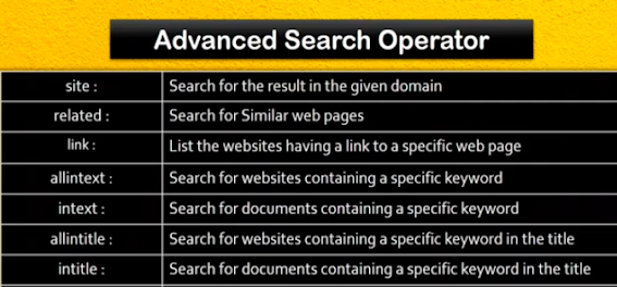 यहाँ पर कुछ बेसिक सर्च ऑपरेटर के बारे में बताए गए है सर्च ऑपरेटर तो बहुत से है पर मैं आपको उनके बारे में नही बता
